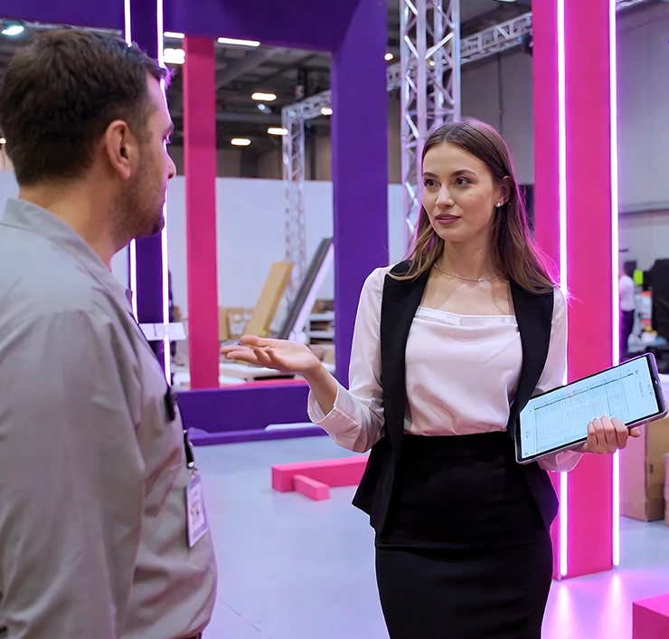 Часто причина в формате стенда или сценарии коммуникации. Мы анализируем потоки и вовлечение аудитории на площадке. Оптимизируем акценты и дорабатываем промо-механику. В результате стенд работает как инструмент продаж, а не декорация.